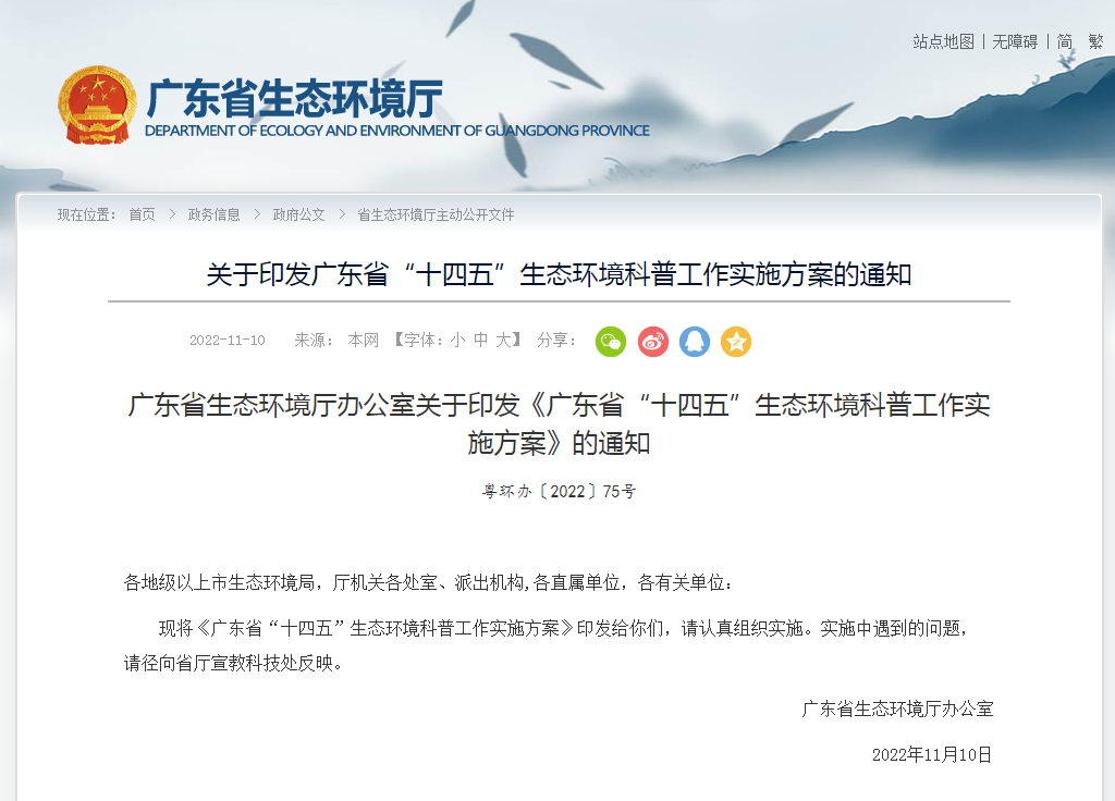 广东省“十四五”生态环境科普工作实施方案