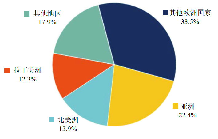 图2 2025 年Cepi 成员国纸及纸板出口分地区情况