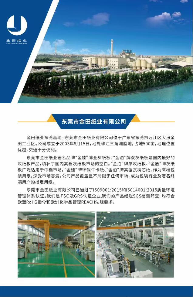 金田纸业遵循诚信、双赢、合作、发展的经营理念,致力打造全球最专业、世界一流的灰纸板生产厂家。