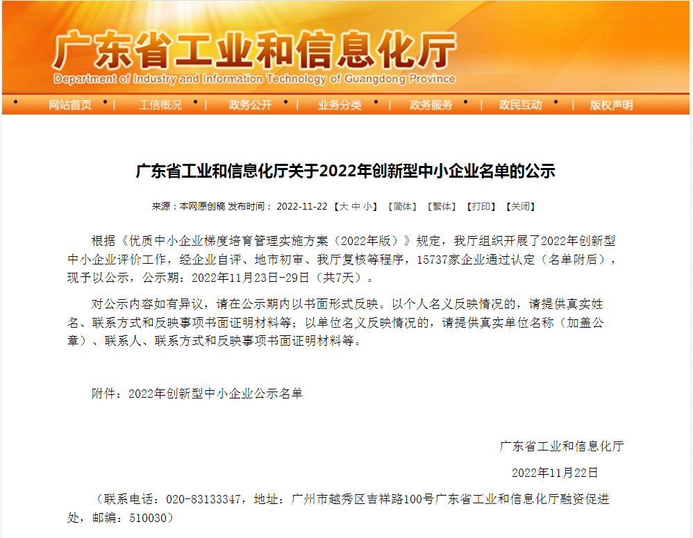 11月22日,广东省工业和信息化厅对“2022年创新型中小企业名单”进行公示。根据《优质中小企业梯度培育管理实施方案(2022年版)》规定,经企业自评、地市初审、省工信厅复核等程序,有15737家企业通过认定,其中,我会多家会员和造纸及相关企业上榜,对上榜的单位表示衷心的祝贺!