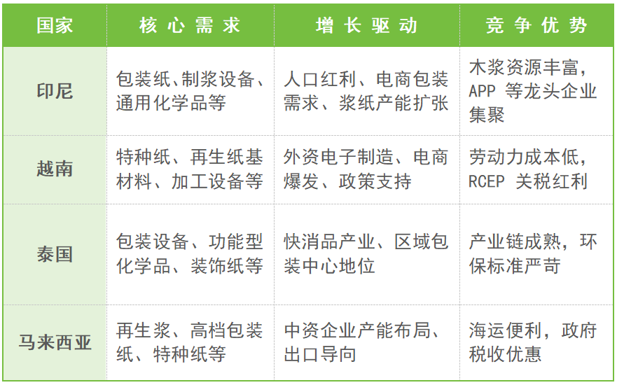 东南亚造纸行业需求增长迅猛,但呈现“低端饱和、高端空白”的不均衡发展格局,行业整体向绿色化、规模化、高端化转型。