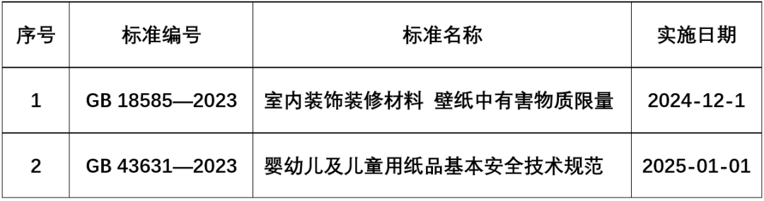 两项强制性国家标准涉及壁纸和婴幼儿及儿童用纸品,请相关企业务必关注标准技术内容和实施日期,尽快采取优化原料、改进工艺、升级产品等措施,以确保产品符合标准要求。