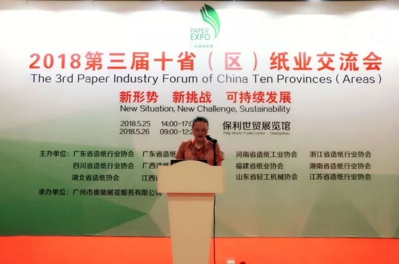 为促进各兄弟省(区)间造纸行业的合作与交流,更好地掌握国内重点造纸省份发展的最新动向,协助企业制订发展方向,由广东、江苏、浙江、河南、福建、四川、广西、湖北、湖南、江西等十省(区)造纸协会、山东省轻工机械协会主办的“2018第三届十省(区)纸业交流会”,于5月25-26日在第十五届广州国际纸展期间同步召开。本届交流会旨在深入交流、探讨新形势下国家环保新政实施、废纸及木浆走势、产业可持续发展等内容,围绕“新形势、新挑战、可持续发展”这一主题展开讨论。 5月25日下午的会议由广东省造纸行业协会常务副秘书长张翠梅主持,四川省造纸行业协会罗福刚秘书长为会议致辞,广东省地方税务局和广东省环保厅分别派代表出席会议并解读了环境保护税和造纸相关的环保政策,广东省造纸行业协会陈竹秘书长介绍了广东省造纸行业概况及相关政策。 罗福刚秘书长表示,2017年造纸行业生产运行整体保持基本平稳态势,生产总量持续增加,产销基本平衡。然而,去年国家对进口废纸进行了严格控制,今年又开始实施最新的环保税,近年来国家相继出台了一系列环保督查、排污许可证制度等相关政策,对造纸行业产生了较大的影响。希望通过此次会议,大家能够对目前的形势和政策有全面的认识,做好环保和税收方面的应对工作。 广东省造纸行业协会张翠梅常务副秘书长主持会议
