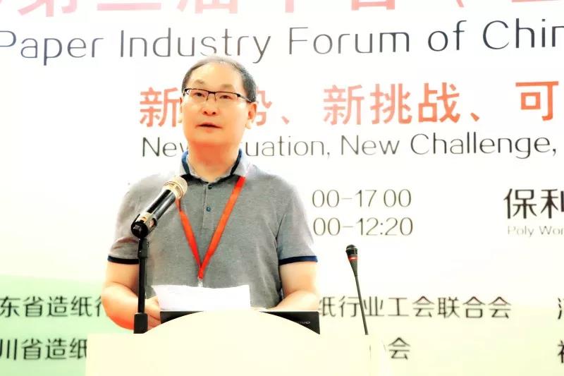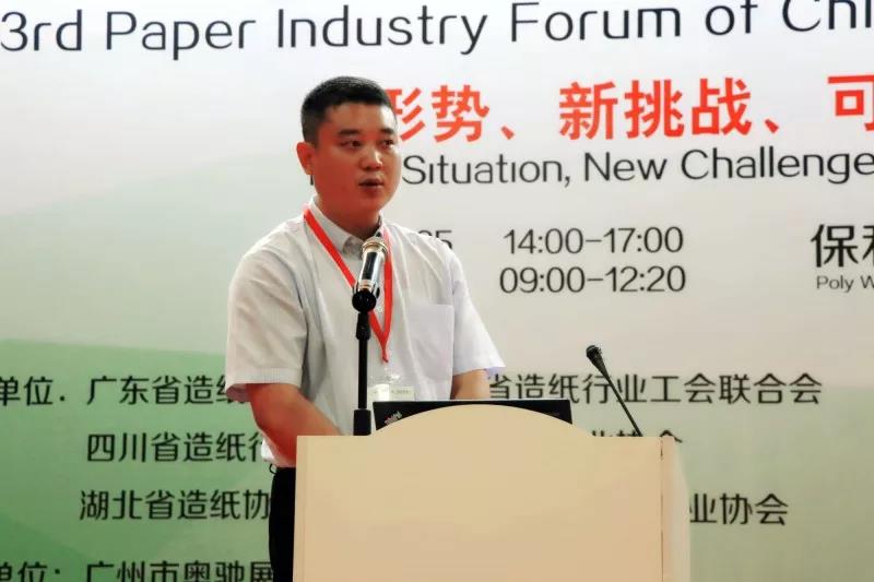 广东省造纸行业协会陈竹秘书长介绍了广东省造纸行业发展情况。陈秘书长总结了2017年广东省各纸种的产量、废纸和木浆原料的价格以及包装纸的走势,并介绍了近期各级政府颁发的与行业相关的政策,提醒企业合法合规运作,对政策改变提前做好防范措施。 广东省造纸行业协会协会陈竹作专题演讲